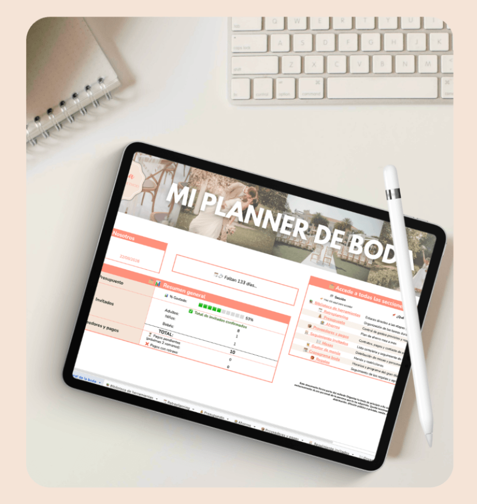 👉 Descubrirás cómo establecer y repartir tu presupuesto, entender el impacto real de los invitados y seguir tus gastos sin perder el control durante los preparativos.